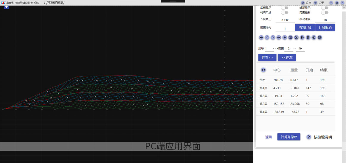 賽象科技輪胎纏繞機(jī)智能控制系統(tǒng)使用非常便捷,配方建立后,系統(tǒng)根據(jù)指定的算法,進(jìn)行分層計(jì)算和膠片定位計(jì)算,生成預(yù)覽圖。