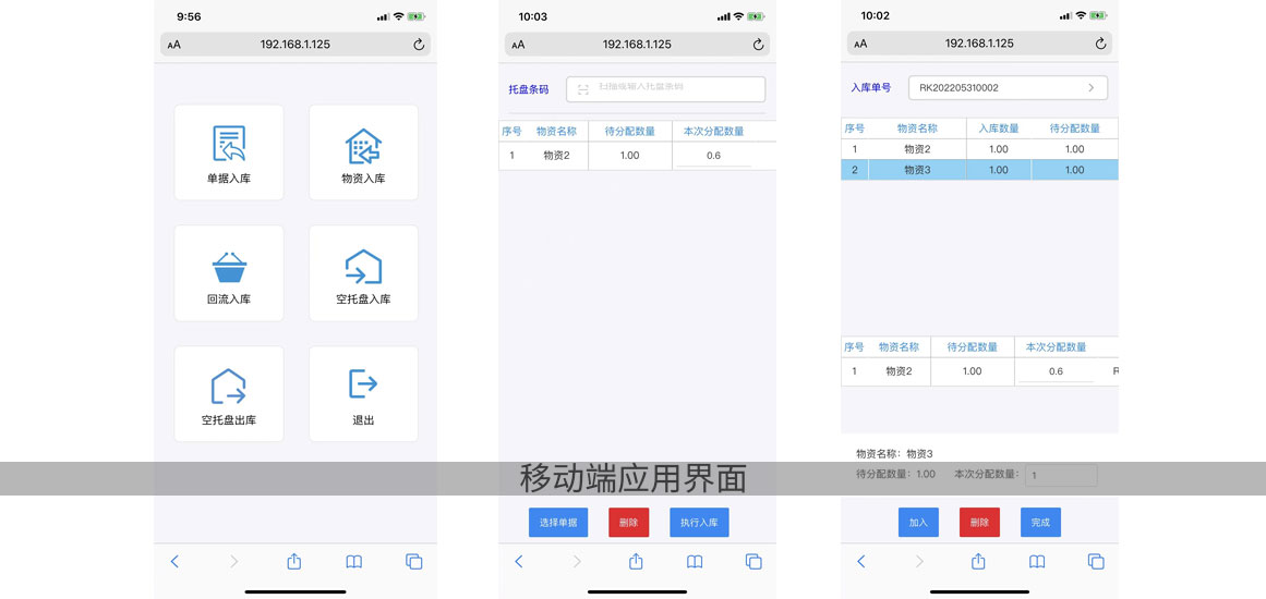 基礎數據管理 | 托盤條碼管理 | 物資入庫 | 物資出庫 | 自動回流 | ||||